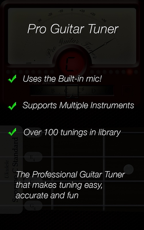 It includes a lot of other features as well, . The best tuner in the world! 2640 chords and amazing instruments like guitar, bass and yukulele! Pro guitar tuner is a chromatic tuner that works like an ordinary guitar tuner but right on your android device. Developed by the team behind the popular online guitar tuner of proguitar.